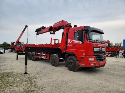 作者:程力專用汽車股份有限公司東風前四后八20噸折臂隨車吊,選用宏昌天馬20噸折臂吊機,國六采用東風前四后八玉柴300/350馬力發動機,陜齒10檔變...