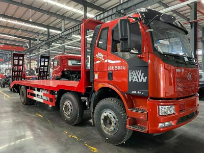 作者:程力專用汽車股份有限公司程力前四后八平板運輸車自重12噸,板高一米,板寬3米,拉20噸不超載不罰款,可定制前舉升,爬梯離地夾角更小,上下坡度更平...